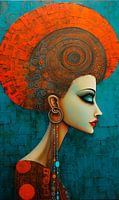De kleuren blauw en oranje domineren het werk, waardoor een intrigerend contrast ontstaat dat de aandacht van de kijker trekt. Het diepe blauw symboliseert rust, sereniteit en introspectie, terwijl het levendige oranje warmte, energie en vitaliteit uitstraalt. Deze kleurencombinatie creëert een visueel dynamisme dat de emoties van de kijker kan aanwakkeren.