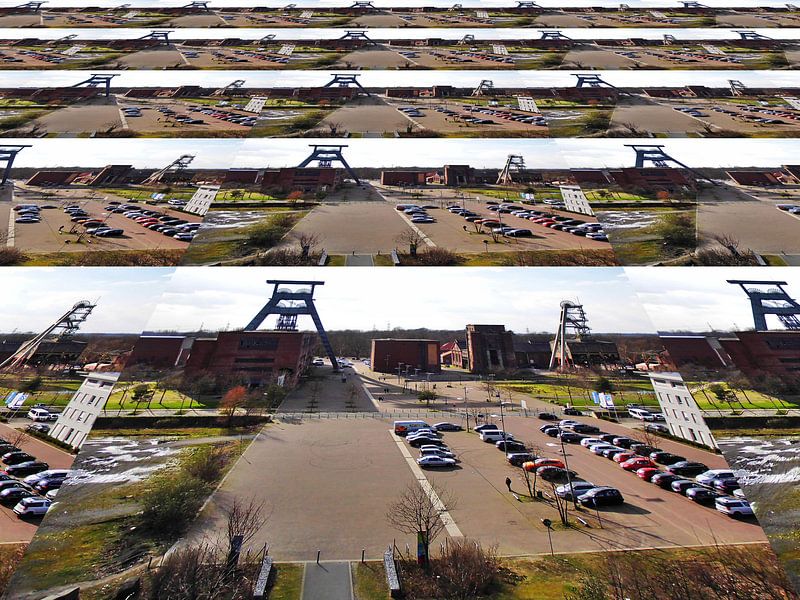 Fördertürme der Zeche Ewald in Herten perspektivisch verfremdet