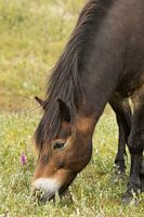 Exmoor pony in Duingebied op Terschelling aan het grazen. Verticaal beeld om mooi intiem beeld met de pony te krijgen