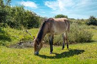 In het Noordhollands Duinreservaat grazen Exmoorpony’s vredig in het duinlandschap . Deze robuuste, kleine paarden, afkomstig uit het zuidwesten van Engeland, zijn perfect aangepast aan het leven in ruige omstandigheden. Hun aanwezigheid in het duingebied helpt bij het natuurlijke beheer van de vegetatie, waardoor een diverser landschap ontstaat.