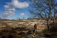 In het uitgestrekte duingebied bij Bergen aan Zee in Noord-Holland grazen Exmoorpony's. Het is een mooie voorjaarsdag, met enkele witte wolken in een blauwe lucht.