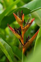 Exotische oranje met rode kleur bloem tussen de palmen in Thailand. Een oranje-rode bloem in Thailand kan symbool staan voor het vreugde en kunnen geluk brengen. De typische vorm maakt het fotogeniek.