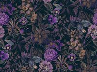 sfeervol botanisch en floraal motief in donkerpaars en bruine kleuren