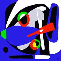 Abstract werk, primaire kleuren, strakke lijnen, grafisch.