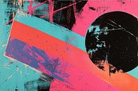 Dit trendy kunstwerk is een levendige abstracte compositie die het oog trekt met zijn gedurfde kleurgebruik en sterke grafische vormen.