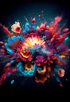 In dit digitale kunstwerk zien we een overweldigende explosie van bloemen in een overvloed aan kleuren.