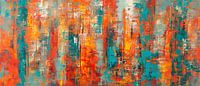Een harmonieus kleurenspel bestaande uit levendige roodtinten, energiek oranje en verfrissend turquoise brengt de muren tot leven. De dynamische structuren en abstracte vormen nodigen uit tot dromen en nadenken. Dit kunstwerk is perfect voor de woonkamer, waar het gesprekken stimuleert en een warme sfeer creëert.