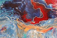 Abstract schilderij met waterval van vloeiende kleuren die samen een energiek en dynamisch beeld vormen.