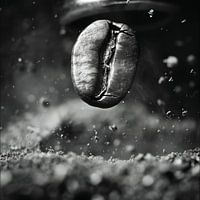Deze dynamische macrofoto legt het moment van een explosie van koffiebonen vast in verbluffend detail. De textuur van de bonen die in de lucht zweven en de fijne deeltjes eromheen creëren een dramatisch en krachtig beeld. Perfect voor koffieliefhebbers en kunstverzamelaars die de schoonheid van het alledaagse in een nieuw licht willen zien.