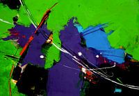 Kleurenintensief beeld in acryl, violet, groen, zwart, spontaan, expressief schilderen, modern, abstract, hedendaags schilderen, decoratieve muurschildering voor hotel, restaurant, woonruimte of kantoor, kleurrijk, opvallend, krachtig