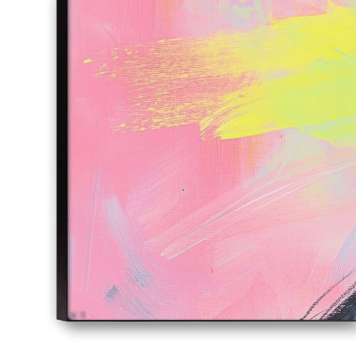 Expressief | Vibrant Solitude - Dit abstracte schilderij toont een dynamische, expressieve menselijke figuur in zwart met levendige achtergrondkleuren zoals geel en roze, waarbij het contrast en de beweging centraal staan.