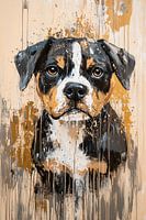 Dit levendige kunstwerk brengt een realistische hond tot leven met een abstracte twist. De opvallende verfspatten en dynamische penseelstreken geven het ontwerp een energieke en moderne uitstraling. Het portret van de hond, vol expressie en karakter, wordt versterkt door het contrast van zwart, wit en aardetinten. Het is een ideaal stuk voor liefhebbers van dieren en moderne kunst die op zoek zijn naar iets unieks om hun interieur te verrijken. Of het nu in een woonkamer, kantoor of een andere ruimte wordt opgehangen, dit schilderij trekt zeker de aandacht en geeft een bijzondere sfeer aan de omgeving.