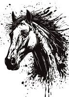 Deze dynamische afbeelding van een paardenhoofd in zwart-wit legt de krachtige elegantie van het dier perfect vast. De expressieve lijnen en artistieke spatten geven de afbeelding een bijzondere energie en beweging. De manen lijken te wapperen in de wind, terwijl de intense blik van het paard kracht en vastberadenheid uitstraalt. De contrastrijke zwart-wit tinten creëren een indrukwekkende diepte die het motief bijzonder levendig maakt.