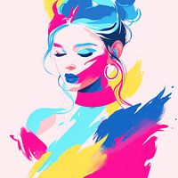 Breng energie en kracht in je interieur met dit expressieve vrouwportret in felle neonkleuren. De mix van roze, blauw en geel maakt dit kunstwerk een echte eyecatcher voor een modern, kleurrijk of eclectisch interieur.