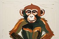 Dit opvallende ontwerp toont een expressieve aap in warme, gedurfde kleuren. Het schilderij combineert speelsheid met diepgang en vangt de aandacht door de sterke penseelstreken en levendige kleuren. De aap, met zijn zachte gezichtsuitdrukking, straalt een gevoel van rust en eenvoud uit, terwijl de dynamische lijnen en rijke kleurcontrasten het geheel een moderne flair geven. Ideaal voor in een woonkamer of kantoorruimte, biedt dit kunstwerk een levendige en tegelijk minimalistische esthetiek. Het past goed in een eigentijds interieur en voegt een speelse, maar toch stijlvolle touch toe aan elke ruimte.