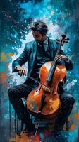 Dit expressieve abstracte kunstwerk toont een cellist in silhouet, weergegeven met schilderachtige beweging en gelaagde textuur. De focus op stemming en ritme creëert een sterke emotionele verbinding, waardoor kijkers de muziek visueel kunnen voelen. Dit kunstwerk is ideaal voor klanten die op zoek zijn naar een elegante, op muziek…