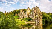 De Externsteine in het Teutoburger Woud op een mooie zomerdag