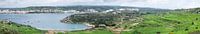 View over the rocks, valleys and local agriculture at the bay of the Mediterranean sea, Selmun, Malta