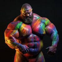 Een gespierde sterke man met kleurrijke neon bodypaint.