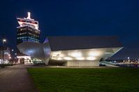 Eye filmmuseum en ADAM toren in de avond van Peter Bartelings