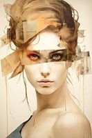 Ogen in het onzichtbare, een abstract portret van een jonge vrouw in beige tinten.
