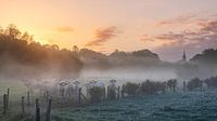 Deze foto is niet zomaar ontstaan. De locatie werd zorgvuldig uitgezocht via Google Maps, een dag van tevoren bezocht, en met aandacht voor de juiste weersvoorspelling ben ik vroeg in de ochtend teruggekeerd. Toen er zich ook nog mist vormde, viel alles op zijn plek: compositie, licht en sfeer. Het resultaat is een werk dat zowel warm als dromerig aanvoelt — een ode aan het platteland in zijn puurste vorm.