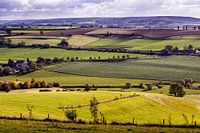 Een lappendeken van weilanden rond het Zuid-Limburgse dorp Eys gezien vanaf het Eyserbos.