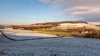 Een zonnige winterdag in het dorp Eys met zicht op het Eyserbos (Limburgse Heuvelland)