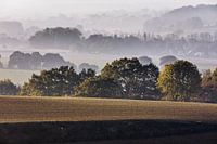 Uitzicht over het mistige Geuldal in de richting van Wittem gezien vanaf het Eyserbos.
