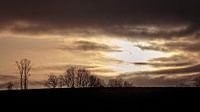 Silhouetten van de bomen van het Eyserbos tegen een donkere hemel in het Zuid-Limburgse Heuvelland (Nederland).