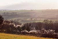 Tegenlicht in de velden bij Eyserhalte in het Zuid-Limburgse Heuvelland (Nederland).