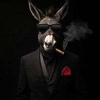 Ezel met een sigaar en zonnebril schilderij is een gedurfd en opvallend kunstwerk dat charme, humor en stijl moeiteloos combineert. Deze bijzondere fotoprint toont een ezel in close-up, voorzien van een stijlvolle zonnebril en een nonchalant hangende sigaar, met een diepe zwarte achtergrond die het portret extra kracht en karakter geeft.