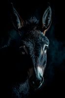 De expressieve blik van een ezel schittert in een mysterieus licht en betovert met zijn zachte aanwezigheid en diepe ogen. De subtiele duisternis om hem heen versterkt de intimiteit van deze afbeelding. Perfect voor in de woonkamer, het creëert een rustgevende sfeer en nodigt uit om te blijven hangen en na te denken.