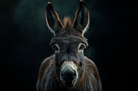 Met zijn expressieve grote oren en zachte gezichtsuitdrukkingen straalt dit dier een aanstekelijke kalmte uit. De mystieke donkere achtergrond versterkt de diepte van de afbeelding en creëert een harmonieuze sfeer. Dit kunstwerk zou ideaal staan in een gezellige woonkamer of een rustieke eethoek, waar het je uitnodigt om te glimlachen en na te denken.