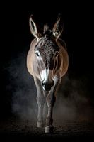 Zachte ogen en een majestueuze aanwezigheid: een ezel die schittert in schemerlicht en een mysterieus aura uitstraalt. Zijn gedetailleerde vachtstructuur en sfeervolle achtergrondschaduw trekken ieders aandacht. Perfect voor in de woonkamer om een gezellige en uitnodigende sfeer te creëren!
