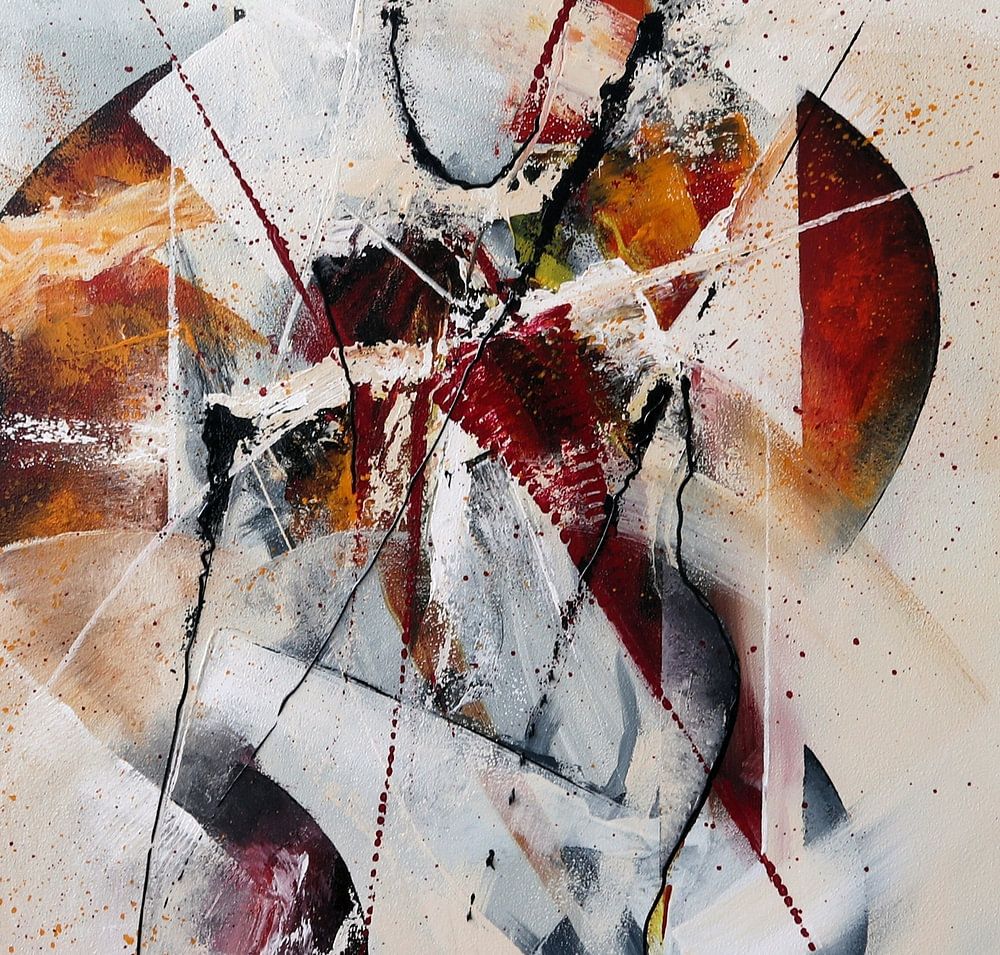 Mijn proces is intuïtief: kleuren vloeien samen, lijnen ontstaan spontaan, en uit die stroom groeit iets wat niet vast te leggen is in woorden. Elk werk is een moment van…