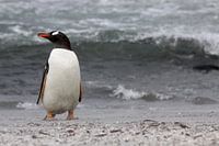 Ezelspinguïn op het strand van SeaLion Island, een van de eilanden van de Falklands.