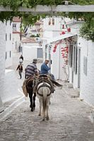 Deze ezeltjes komen weer terug vanuit het hoger gelegen dorpje richting zee.