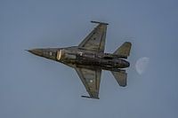 Het F-16 Demo Team voor het airshow seizoen 2022 van de Griekse Luchtmacht met de General Dynamics F-16C Fighting Falcon "Zeus". Op deze foto zie je ook een halfvolle maan.