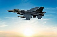 Nederlandse F-16 in de take-off. Gemaakt tijdens de Frisian Flag 2018 oefening. Achtergrond is later toegevoegd.