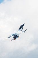 Altijd een topper tijdens vliegshows, de solo F-16 Fighting Falcon van de Belgische luchtmacht die zich omringt met rook en flares.