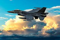 Nederlandse F-16 in de take-off. Gemaakt tijdens de Frisian Flag 2018 oefening. Achtergrond is later toegevoegd.