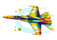 F-18 Hornet in Pop Art gemaakt met gebogen vormen en een combinatie van vele kleuren om een schattig, elegant, cool en natuurlijk kleurrijk F-18 Hornet object te vormen.