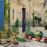 Meerlaags fotowerk van een fantasie gevel, gecreëerd uit diverse foto's met deuren, luiken en ramen. De foto's in dit werk zijn gemaakt in Arles, Zuid Frankrijk.