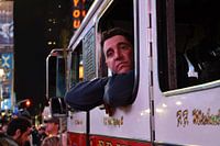 Firefighter overlooking the crowd celebrating the death of Osama Bin Laden on Times Square (2011).
