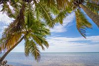Palmbomen op het strand. De Atlantische Oceaan / Golf van Mexico is op de achtergrond. U kunt genieten van dit uitzicht tijdens het rijden op snelweg 1 over de Florida Keys naar Key West.