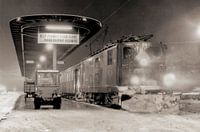 FO HGe 4/4 I Balkonlok van de Furka-Oberalp Bahn in de jaren 80 van de vorige eeuw in een winters station Brig.