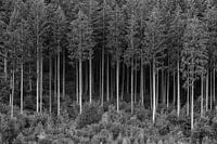 Bomen in een bos in zwart-wit