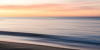 FOTOGRAFIE Strand, zee en lucht vervaagd in Menton aan de Côte d'Azur in Frankrijk. Gefotografeerd met de techniek van ICM-fotografie (opzettelijke camerabeweging) om een schilderachtig, abstract effect te bereiken.