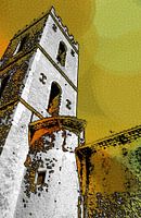 Entrevaux in het Zuiden van Frankrijk. De Côte d'Azur vlakbij maar toch een authentiek oud middeleeuws dorp. Je kijkt langs de kerktoren met zijn kantelen omhoog.